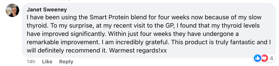 Using the Smart Protein blend specifically developed for people with an underactive thyroid has had a revolutionary impact on my life. Previously, I felt constantly exhausted and never seemed to have enough energy to get through the day. However, since I started using this blend a few weeks ago, I have experienced a drastic change in my well-being. My energy levels have noticeably increased and overall my health seems to have improved greatly. This product has unexpectedly supported me in my weight loss journey, which I had been on for years to no avail. The positive changes I have experienced thanks to the Smart Protein blend are remarkable, and I am very excited about them. I would highly recommend it to anyone experiencing problems due to an underactive thyroid. It has made a world of difference to me, and I am extremely grateful that I gave it a chance.